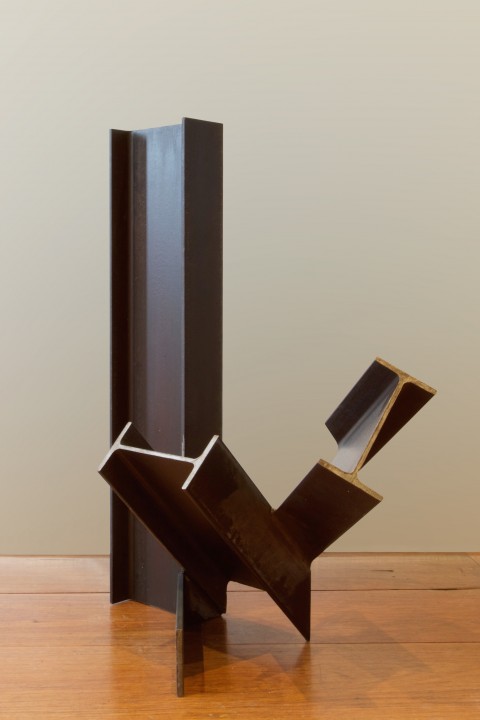 Ferro A play on the Latin name for steel, from the works interwoven positive and negative shapes combined with its strong pyramidical composition emerges an abstract Pharaonic like portrait.